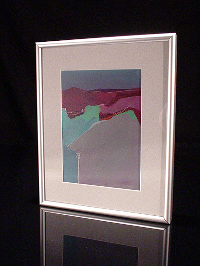 I acquired this small work from Bob Rankin shortly before Christmas 1998. It looks to me like a landscape... at any rate, the combination of colors is very soothing. The use of a grey mat, rather than the usual white mat, really works well with this work. Click here to return to the Collection. |