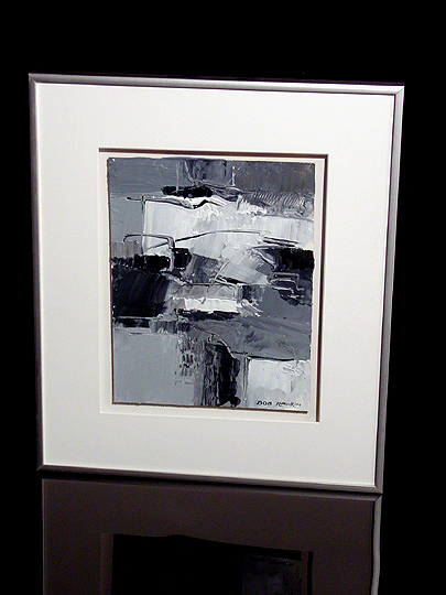 This work is very similar to Bob's work Umbrian Window in appearance, but the color scheme is very reminiscent of his earlier work Spectrum 1. This work, however, does not even have the small stripe of color featured in Spectrum 1... it's just black and white and shades of grey. Bob's name for this work is a clever pun on the words "plain" (because it's just black and white) and "plane" (because it's flat). I really like this name. Click here to return to the Collection. |