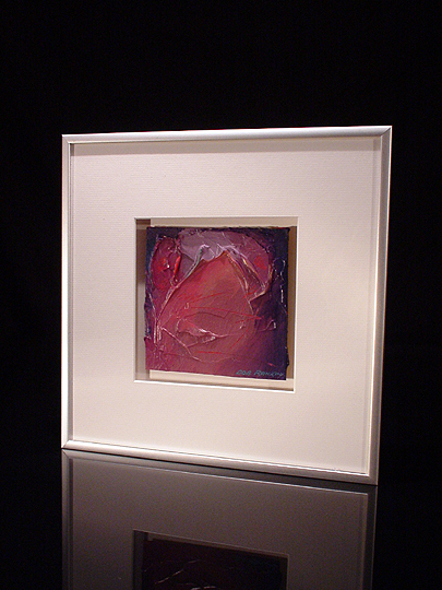 All of these works use interesting combinations of colors to produce different kinds of energy. Of course, since they're all the same size, it's rather easy to rotate the four of them whenever I feel like it. Going down the page, these works are Square Surface 1, Square Surface 2, Square Surface 3, and Square Surface 4. Scroll down to see the complete set of these works. Click here to return to the Collection. |