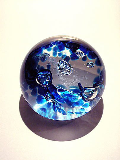 Anyway, the result of all of that work is the paperweight you see here... not terribly impressive, but I like the colors and the effect of the bubbles within the work. Not too shabby for a first try, I think! I'm very glad to have had the chance to create this work of art.