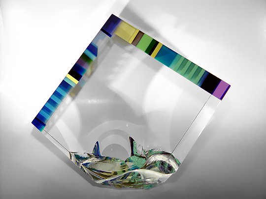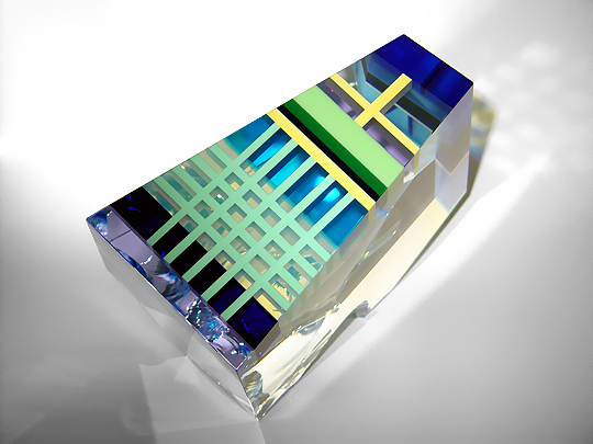 ACQUIRED FROM WILLIAM TRAVER GALLERY, SEATTLE, WASHINGTON, MAY 2001 CUT, FRACTURED, AND LAMINATED SCHOTT OPTICAL GLASS AND VITROLITE, 15" WIDE BY 11" HIGH BY 9" DEEP, SIGNATURE AND SERIAL NUMBER ENGRAVED BY THE ARTIST |