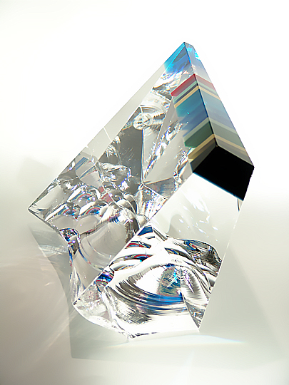 ACQUIRED FROM THE ARTIST, SEATTLE, WASHINGTON, AUGUST 2005 CUT, FRACTURED, AND LAMINATED SCHOTT OPTICAL GLASS AND VITROLITE, 10" WIDE BY 10" HIGH BY 5" DEEP, SIGNATURE AND SERIAL NUMBER ENGRAVED BY THE ARTIST |