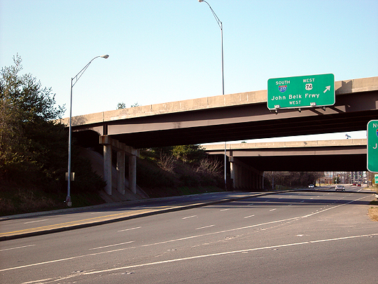 Richard Stenhouse's works are well-known for their otherworldly, dreamlike quality... they are architecturally precise, and are even drawn on mylar, the same material used by architects. At the same time, though, they contain an element of blurriness, as though each image was a recollection from the mind of the viewer. This combination can be somewhat unsettling to the viewer, especially since Richard's works almost never contain any sign of current activity... they seem abandoned somehow. The bridge depicted in this work is in Charlotte, North Carolina, where Kenilworth Avenue runs under the John Belk Freeway and becomes Stonewall Street (about two miles from my home). It's the kind of bridge you usually don't notice you're driving over or under... there's nothing spectacular or unique about it. The bridge's construction is fairly simple: concrete columns supporting a steel and concrete framework, upon which the overpass rests. It could almost be any bridge, anywhere, any time. This work appeals to the part of me that always wanted to be an architect or an engineer. As with The Forbidden Room, Bridge shows a fairly ordinary object in a way that makes me think about all of the things that aren't shown. Where are the cars? Where are the people, the buildings, the road signs? Are we looking at just a single snapshot of reality where these things are temporarily out of the frame, or are they all gone for good? This work was exhibited in the Asheville Art Museum, Asheville, North Carolina, in a 1992 show titled "Pastels Big and Otherwise". Click here to return to the Collection. |