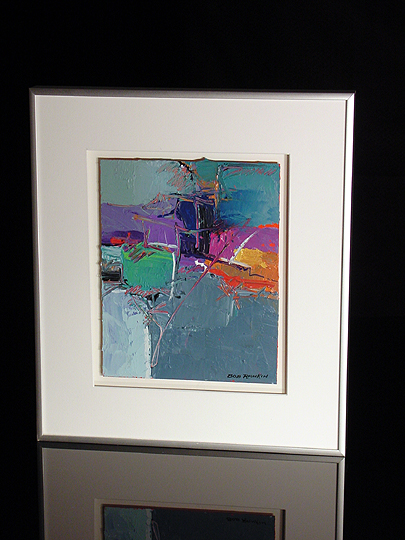 This work, like many of his other works from late 1999 and 2000, was inspired by Bob's summer 1999 trip to the Umbria region of Italy. It's very similar to both Stone Wall 1 and Metropolis with respect to layout and structure, and it shares some common colors with both works, as well. This work earned its name because of an accidental "feature" in the upper part of the work... to Bob, it resembles the frame of a window. Because the work was inspired by his Umbria trip, the name Umbrian Window seemed just right. It's a cool name for a cool work of art. Click here to return to the Collection. |