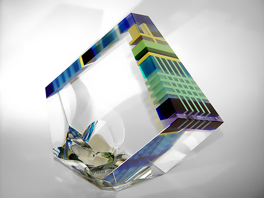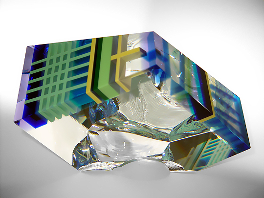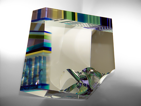 ACQUIRED FROM WILLIAM TRAVER GALLERY, SEATTLE, WASHINGTON, MAY 2001 CUT, FRACTURED, AND LAMINATED SCHOTT OPTICAL GLASS AND VITROLITE, 15" WIDE BY 11" HIGH BY 9" DEEP, SIGNATURE AND SERIAL NUMBER ENGRAVED BY THE ARTIST |