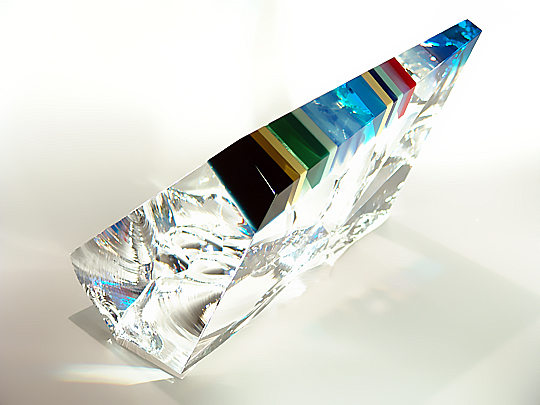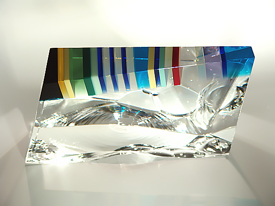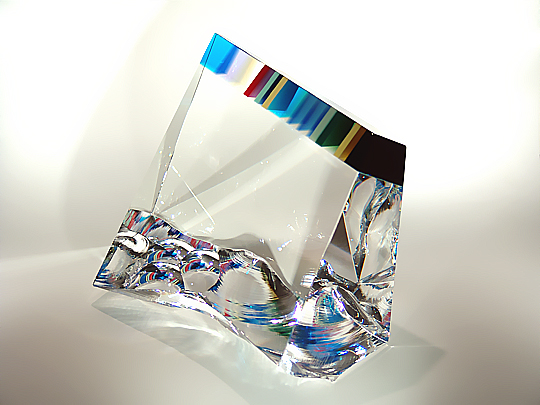 ACQUIRED FROM THE ARTIST, SEATTLE, WASHINGTON, AUGUST 2005 CUT, FRACTURED, AND LAMINATED SCHOTT OPTICAL GLASS AND VITROLITE, 10" WIDE BY 10" HIGH BY 5" DEEP, SIGNATURE AND SERIAL NUMBER ENGRAVED BY THE ARTIST |
