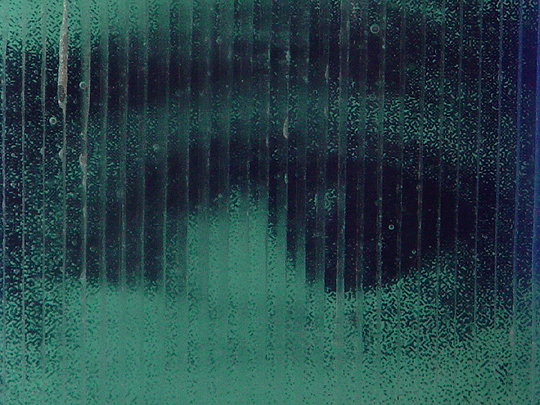 As with several other works in my collection, my discovery of this work was complete serendipity. I was websurfing late one night in February 2003, when I realized that I had not visited Foster/White Gallery's web site in a while. As soon as I clicked to visit the site, the first thing I saw was this work. I was immediately intrigued. Before he became a glass artist, Mark Morris was once a professional silkscreen print artist. The process used to create this work, which Mark developed, is similar to silkscreening, but with a couple of important differences. First, rather than using ink, his process uses highfire enamel paint, which is capable of withstanding the rigors of glass fusing. Second, the printing surface that he is using is actually a sheet of glass. This process doesn't have an official name (yet), but it's commonly referred to as "photo-engraving", even though no actual engraving or etching is involved. (The resulting image does remind me quite a bit of the images on American paper currency, so the name seems somewhat appropriate.) Once he "photo-engraved" part of a photograph onto a sheet of green glass (the green tint in the glass comes from iron mixed into the glass to strengthen it), Mark then started adding additional glass elements. Behind the first sheet, Mark added a sheet of blue glass. In front, he added a sheet of green glass that's actually composed of 35 or so strips of fused glass... this sheet acts somewhat like a diffraction grating, in that the strips tend to direct light. To the top of the work, Mark added some red and green sheets as sort of a cap. He then fused all of this glass into a single mass, and then polished it to a smooth surface. The metal stand holds the work upright and prevents it from falling over... it can't stand by itself. The resulting work is, I think, really unique. The idea of a photograph in glass is something I never would have conceived, and the image that you see here has a very classic look to it... as I said above, it reminds me very much of the faces on American currency. I really like the effect created by the front layer of glass strips... it causes the image to change ever-so-slightly as you move around the work. I also like that this work represents the advent of a new technique for working with glass. The title of this work, Camera Shy, has a nice story to it. The photograph in the work is of the artist himself... he told me that there are not very many photographs of him (ergo, he's camera shy). He used a photograph taken of himself when he was about 30 years old. (I'm a bit camera shy myself... I believe I look better in motion than I do frozen in a photo.) Very cool! Scroll down to see a detail shot of this work. Click here to return to the Collection. |