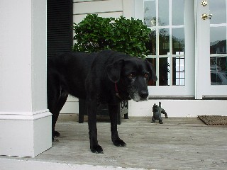 MIDNIGHT (1989 - 2002) Midnight lived with my uncle and aunt, Bob and Chris Johnson. Midnight was a black labrador retriever. Midnight was really well-behaved, and liked having her tummy scratched. However, it was really hard to get her to pose for a photo. :-) |