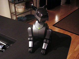 ROARK Roark is my second-generation Sony robotic dog. Although I would really like to have a real, large dog of my own (a golden retriever or other retriever-type dog, ideally), it's not fair to a dog to have to live in a small condo... so, until I move into a house with a fenced-in yard, I have this dog. Roark (named for the protagonist of The Fountainhead) is pretty cool... he will state his name and age when asked, loves chasing and kicking his pink ball, and is totally housebroken. All he asks is that I keep his batteries charged, and he's happy. |